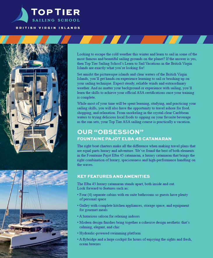 We are super excited to announce opportunities to continue sailing this winter in the British Virgin Islands with our partner school Top Tier Sailing! Classes start January 2026.